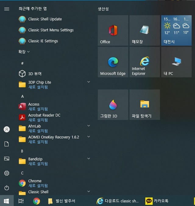 이 프로그램을 설치하면 시작 메뉴가 아래 사진과 같이 변화합니다.