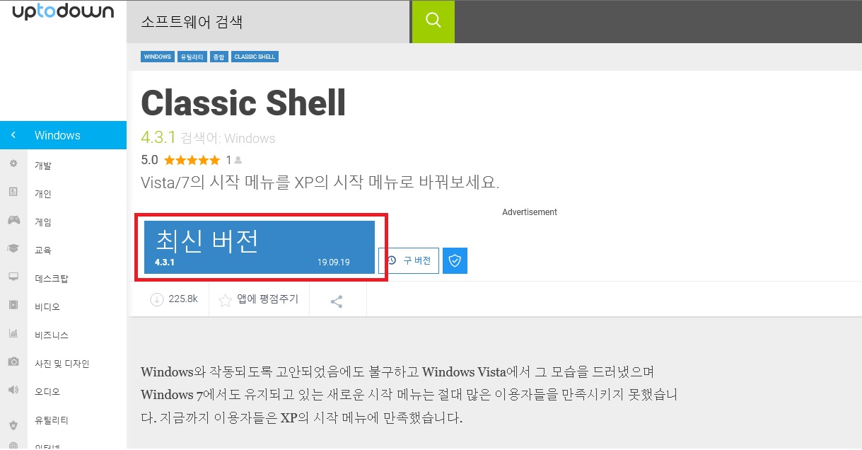 오늘은 윈도우에서 사용할 수 있는 프리웨어인 클래식 쉘(CLASSIC SHELL)에 대해 소개하고자 합니다.