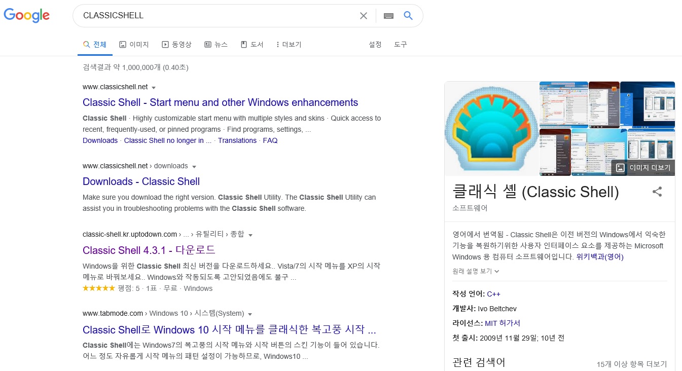 1. 우선 구글에서 CLASSIC SHELL 을 검색합니다.