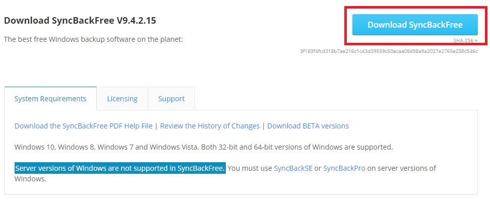 3) 화면을 살펴보면 파란색 버튼으로 Download SyncBackFree 이 있습니다.